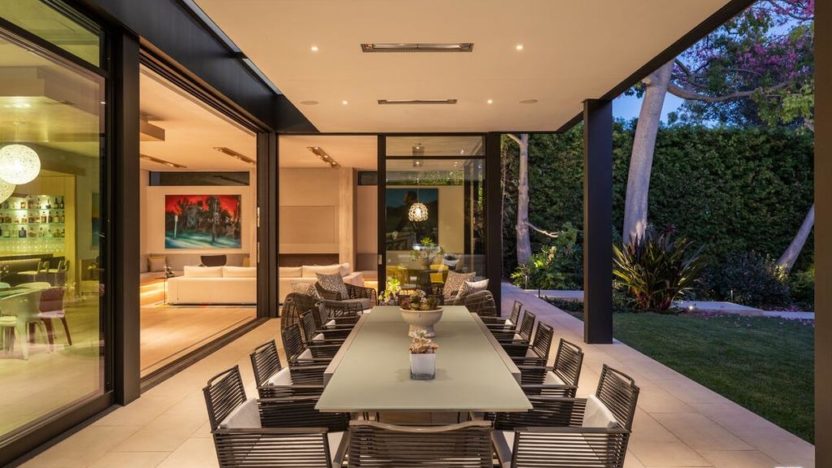 When the weather is lovely, there’s also a fabulous covered, outdoor dining room that can easily accommodate a dozen guests in this chic and modern home. Decisions, decisions.